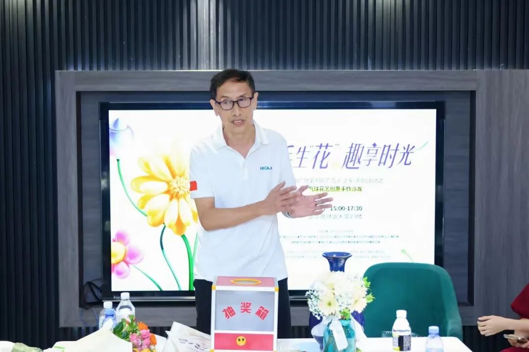 李春亮会长也被现场的欢乐气氛所感染,他从不同花草所赋予的丰富寓意、情感表达出发,即兴朗诵了许多以花为媒的经典诗句,并建议企业老板尤其是女性精英们增强文化和艺术修养,把自己的生活过得更有诗情画意。