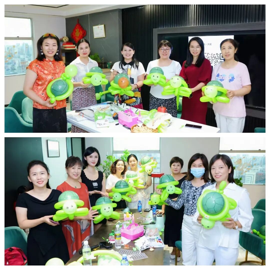 接下来的时间,嘉宾们分成两组,在卢佳老师的指导下,学习用几个普通的长条气球和圆气球,扭变成一个个可爱灵动的小乌龟。 沙龙现场不断传来的欢笑声与气球捏爆的“砰砰”声相映成趣。大约用了一个小时,大家的作品陆续成型。拍照、发圈儿,嘉宾们仿佛回到了童年时光。