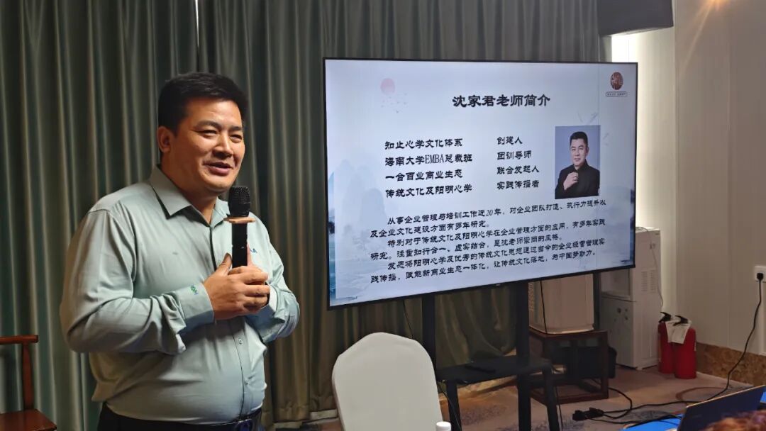 本次沙龙特邀知止心学体系创建人、海大EMBA 总裁班团训导师沈家君老师主讲。沈老师以 “阳明心学智慧 + 商业困局破解” 为切入点,直击行业痛点:当今商业“内卷消耗”与“增长瓶颈”,本质是时代变迁下的思维局限。他提出,企业唯有回归经营本质、向内心求答案,融合阳明心学智慧与自然生态共生法则,才能从 “心性提升” 到 “生态构建”,在复杂市场中找到新出路,分享内容兼具理论高度与落地价值。