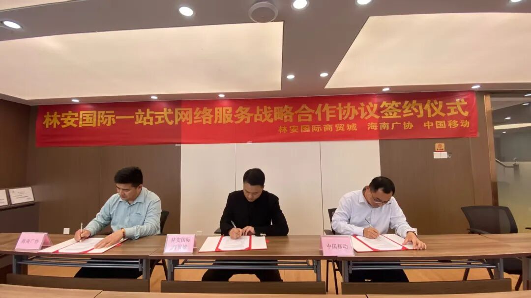 1月20日下午,海南省广告协会秘书长张林、林安国际商贸城营销运营总监荆逊、中国移动三亚公司总经理助理李颖在林安国际商贸城,共同签署了合作服务框架协议。此次合作旨在为会员单位,特别是新入驻林安商贸城的广告同仁提供切实的通信成本优惠,标志着协会在资源整合与精准服务方面取得了新的进展。